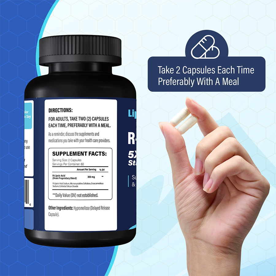 This ensures that each capsule consistently delivers a high-quality dose of R-lipoic acid, supporting energy metabolism, protecting against oxidative stress, and promoting overall cellular health.